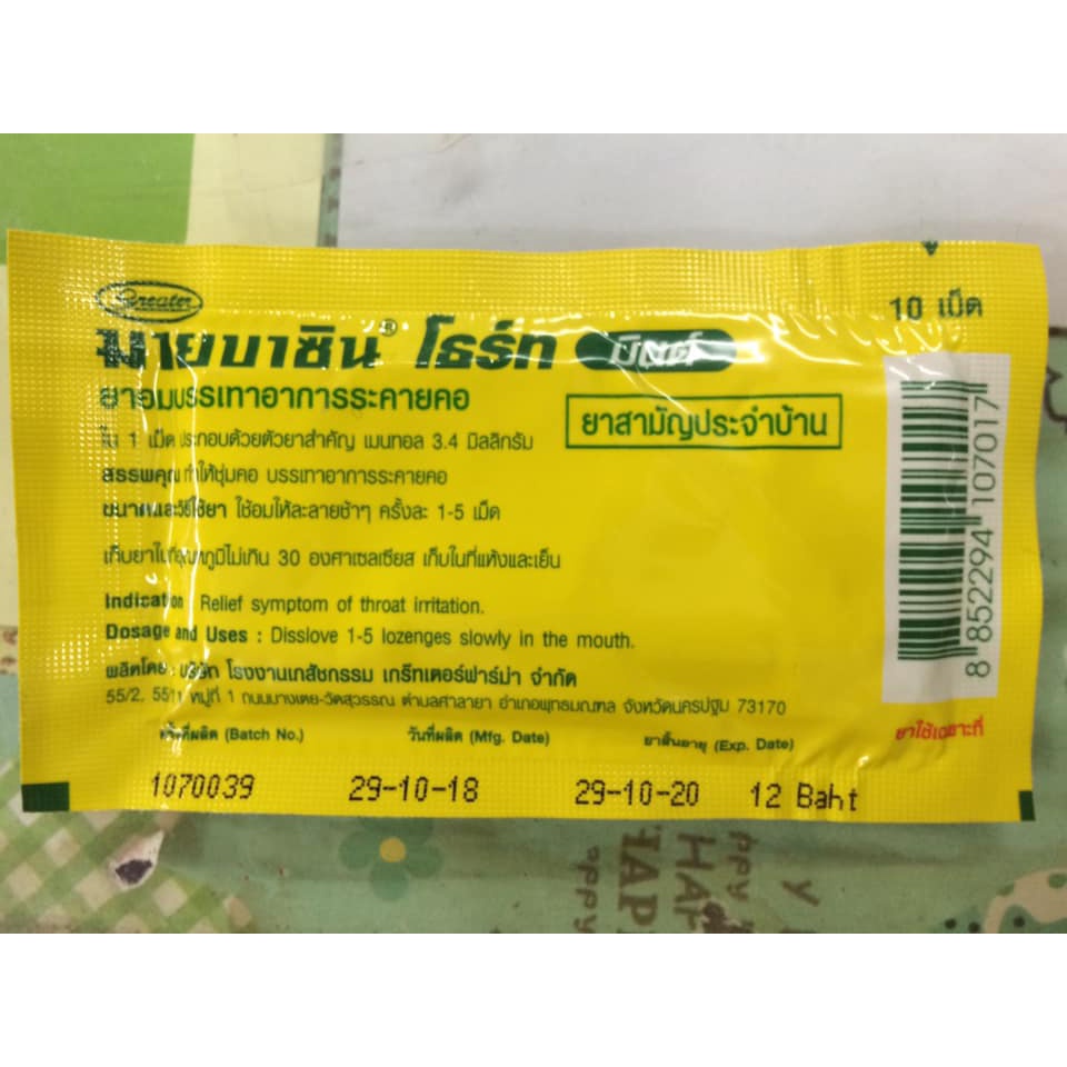 [ 1 ซอง 10 เม็ด ] Mybacin Throat Mint มายบาซิน ซิงค์ เม็ดอม รสมิ้นต์ ของแท้ (P-2281, E02-2)