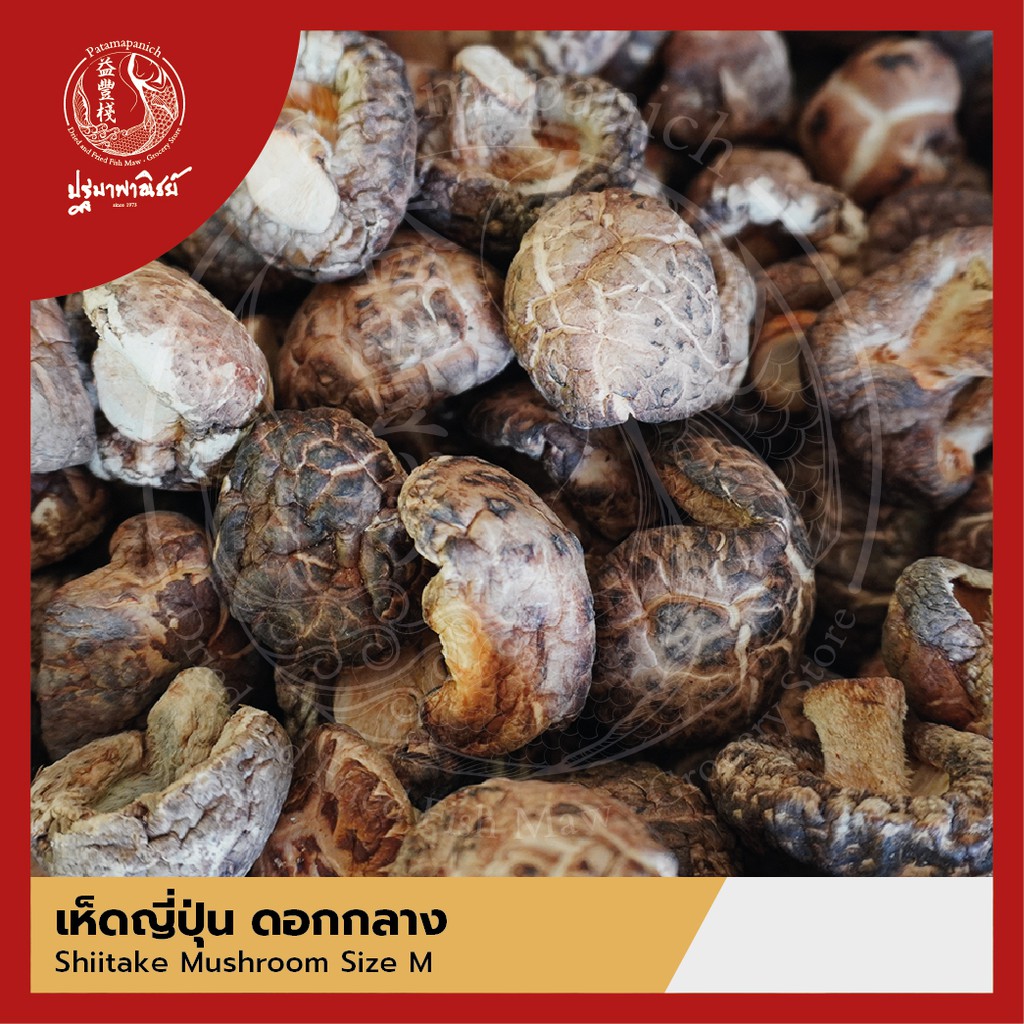 เห็ดหอมแห้งญี่ปุ่น / เห็ดหอมลาย / เห็ดลายญี่ปุ่น ดอกกลาง ปฐมาพาณิชย์ 500 กรัม เห็ดชิตาเกะ (แบบหนา) สำหรับประกอบอาหาร