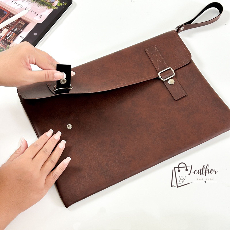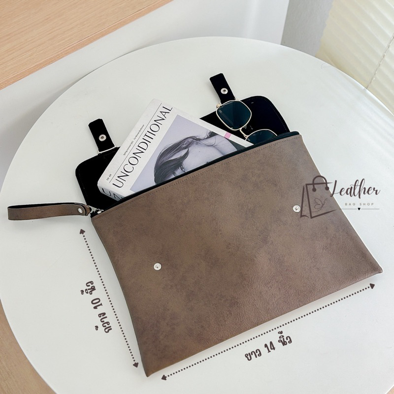 กระเป๋าหนัง ใส่เอกสาร รุ่นใหม่ มีซิปพร้อมกระดุมฝาปิด มีซับในบุกำมะหยี่ กันน้ำได้ ขนาดA4 (10x14)