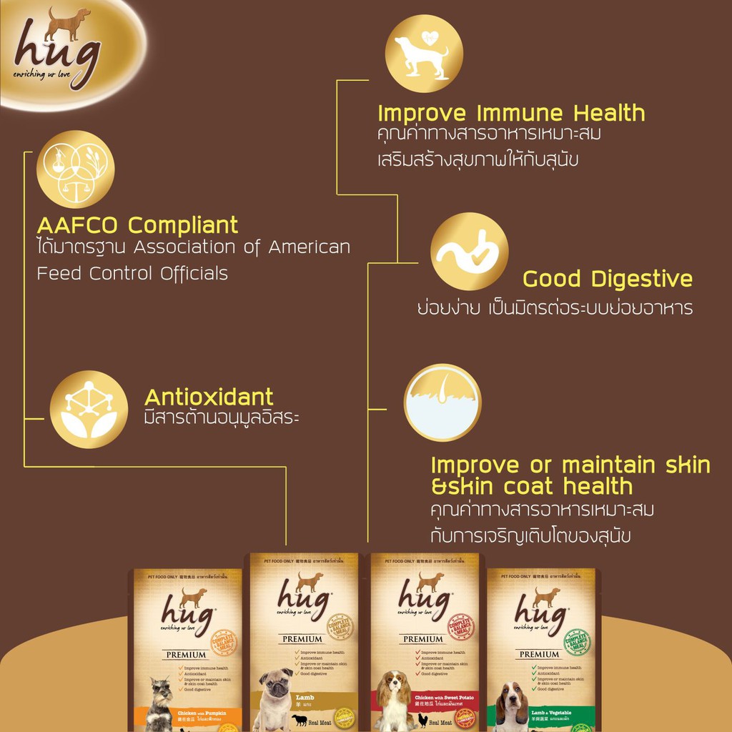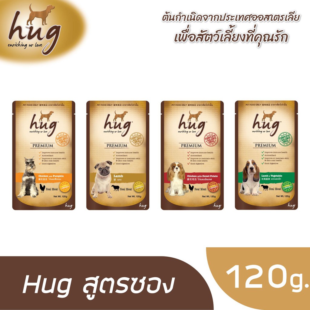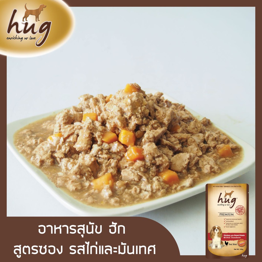 ฮัก อาหารสุนัข 120 กรัม สูตรไก่และมันเทศ x12 ซอง (HUG DOG FOOD 120g. Chicken & Sweet Potato x12)