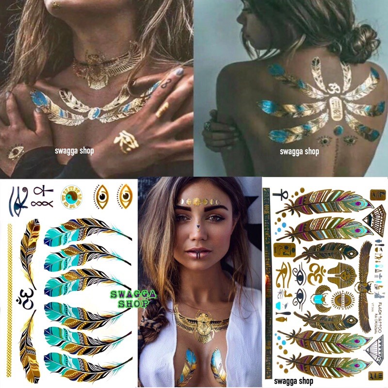 แทททูทอง 4ใบ100บาท แทททูสีทอง แทททูสะท้อนแสงสีทอง แทททูสติกเกอร์ สติกเกอร์แทททู แทททูกันน้ำ