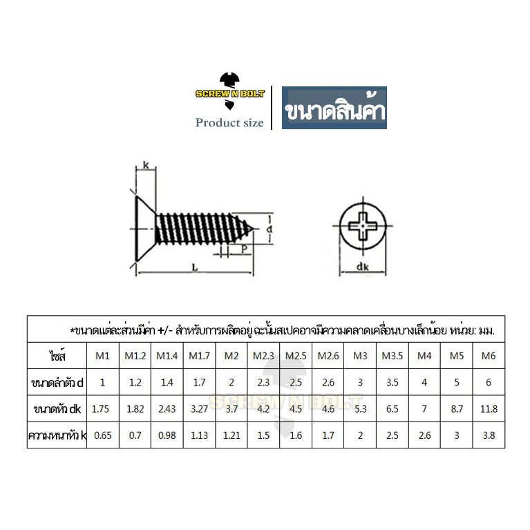 น็อต สกรู หัวเตเปอร์ แฉก F+ สแตนเลส 304 เกลียวปล่อย M5 / Flat Head Phillip Tapping Screw SUS304 M5