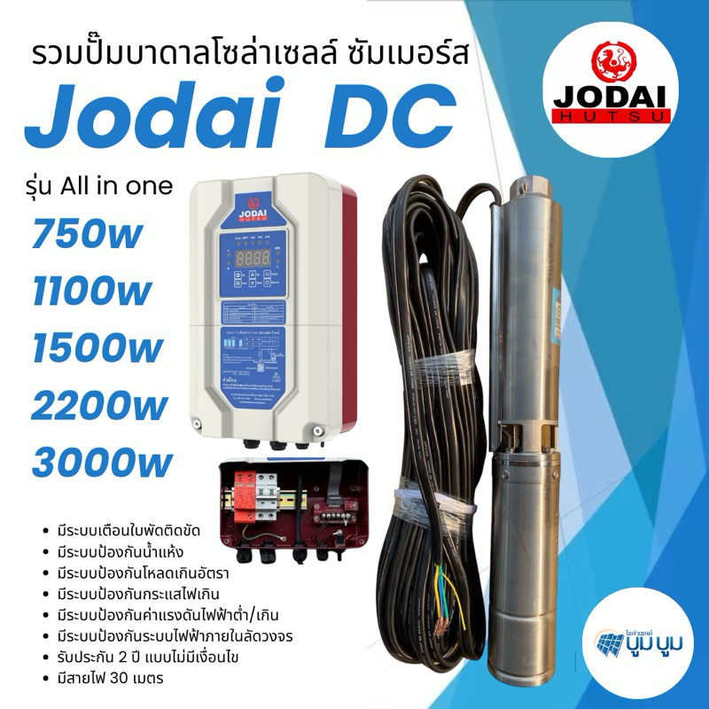รุ่นใหม่‼️ปั๊มน้ำบาดาลโซล่าเซลล์ Jodai โจได DC 750w 1100w 1500w 2200w รุ่น ALL IN ONE ซับเมอร์