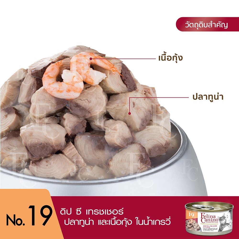 Felina Canino (อาหารสำหรับแมว) : NO.19 Deep Sea Treasure (ทูน่า กุ้ง และน้ำเกรวี่) 70g.