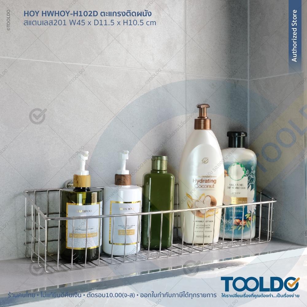 HOY ตะแกรงวางของ ชั้นวางของสเตนเลส 201 ติดผนัง ห้องน้ำ ห้องครัว 450mm รุ่น HWHOY-H102D ติดผนัง ชั้นวางของเอนกประสงค์