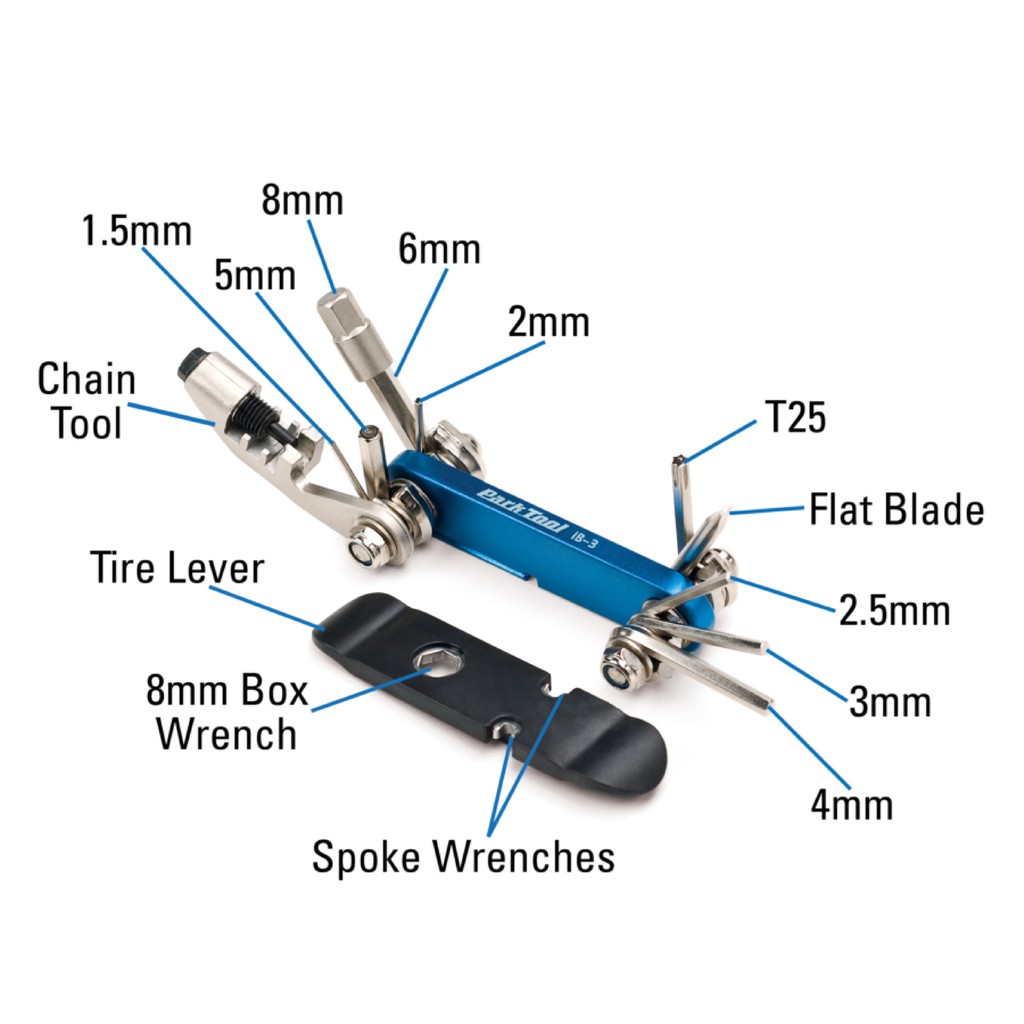 PARK TOOL IB-3 เครื่องมือพับอเนกประสงค์ หัวหกเหลี่ยมขนาด 1.5, 2, 2.5, 3, 4, 5, 6 และ 8 mm ประแจพกพา ไขควงอเนกประสงค์