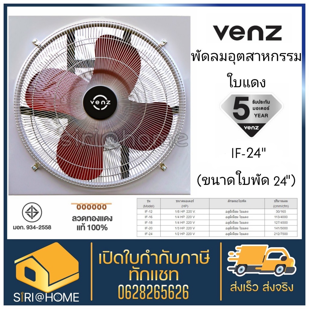 VENZ พัดลมอุตสาหกรรมใบแดง พร้อมตะแกรง ขนาด 24 นิ้ว รุ่น IF-24 พัดลม