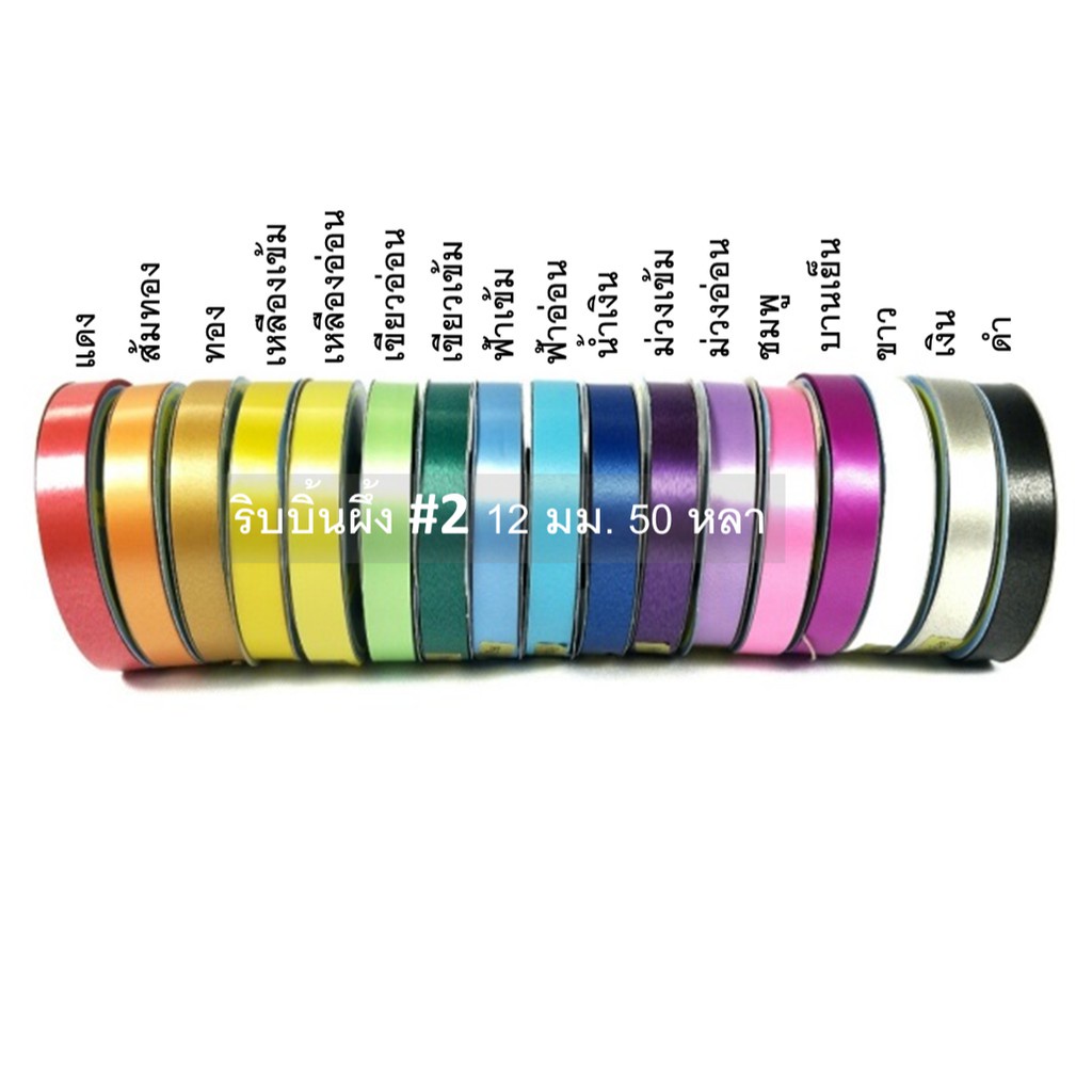 ริบบิ้นเบอร์ #2 เนื้อเรียบมัน ขนาด 12 มม. 50 หลา ตราผึ้ง Royal Bee คละสีได้ เหนียวมาก ไม่แตกง่าย
