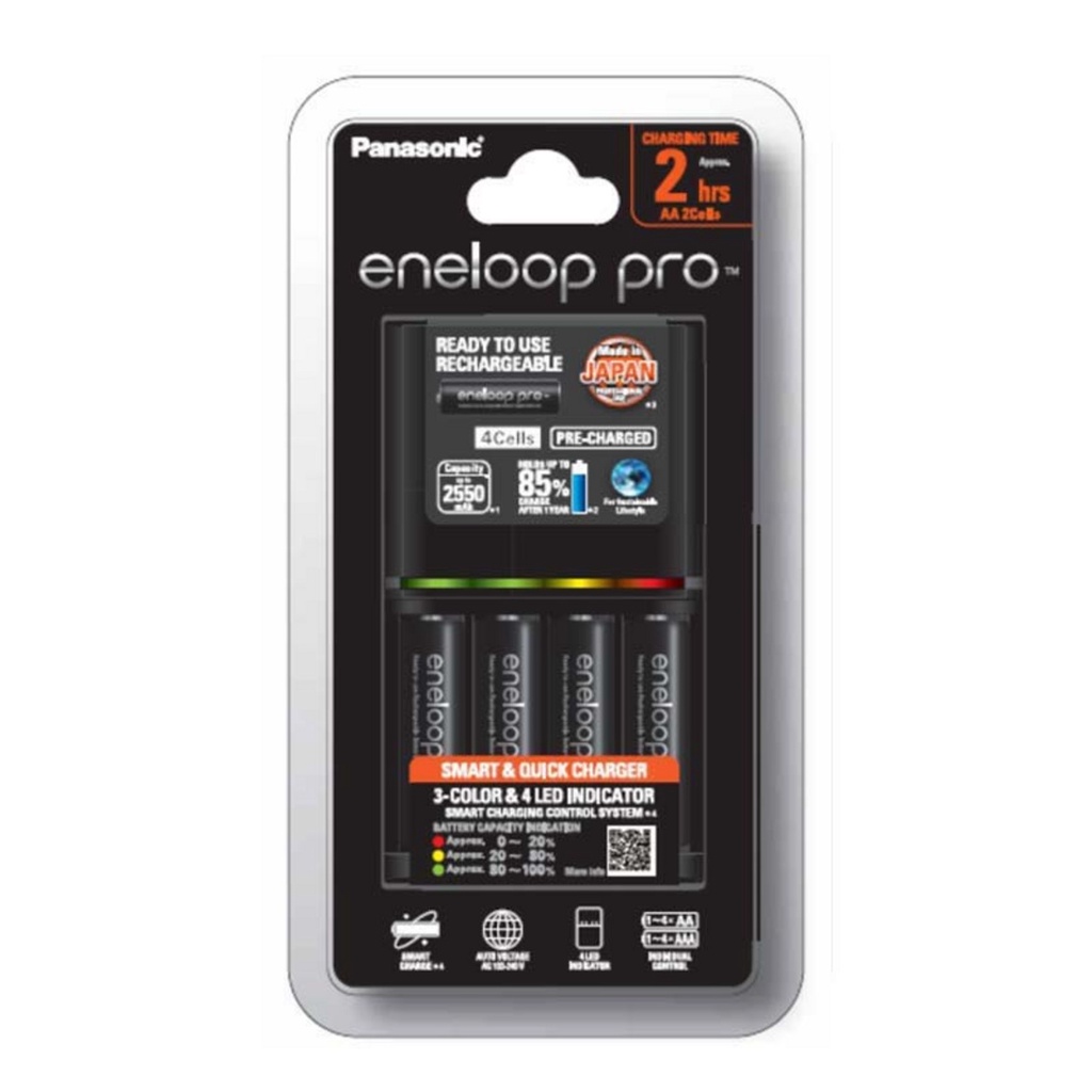 Panasonic eneloop pro Battery Charger BQ-CC55 ชุดชาร์จ 2 hrs.พร้อมถ่านชาร์จ 4 ก้อน AA (2550mAh)