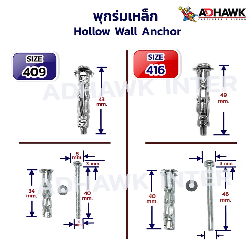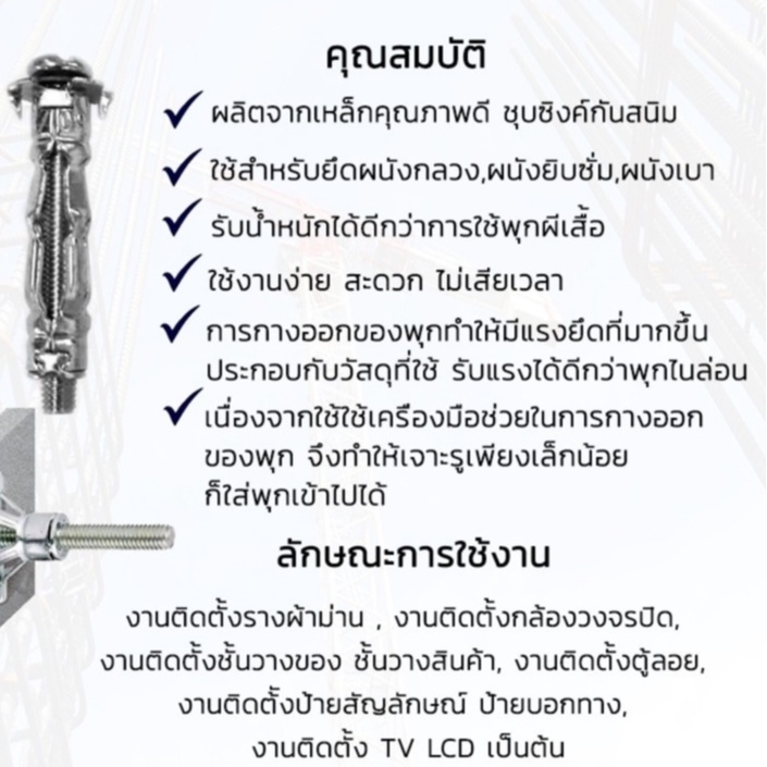 พุกร่มเหล็กชุบซิงค์ ขนาด M4 แพ็ก 10 ตัว พุกยิปซั่มเหล็ก พุกยึดฝ้า แพ็กเล็กราคาประหยัด