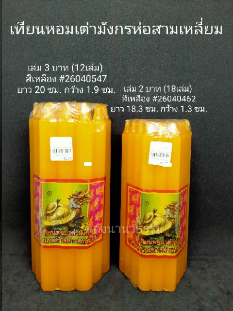 ✨ เทียนหอมเต่ามังกร (เล่ม 2/3 บาท) ห่อสามเหลี่ยม เทียนอย่างดี เทียนไหว้พระ | คลังนานาธรรม สังฆภัณฑ์