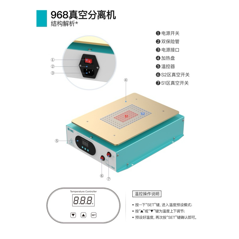 เครื่องลอกจอUYUE 968 15 นิ้ว แบบ2ปั๊มลม