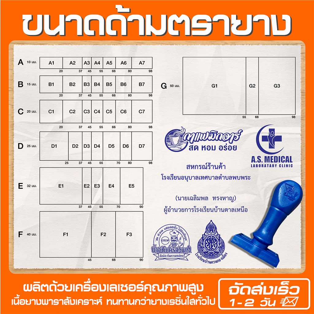 (ผลิตส่ง 1-2 วัน) ขนาดA ตรายางด้ามธรรมดา ชื่อ-ตำแหน่ง สำเนาถูกต้อง หัวบิล โลโก้ บริษัท วัด โรงเรียน คุณครู (ออกแบบฟรี)