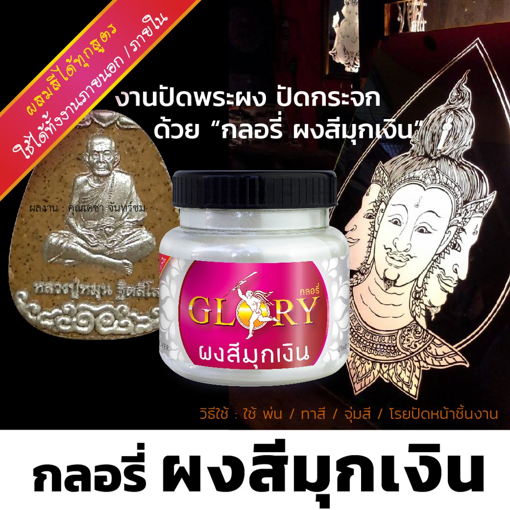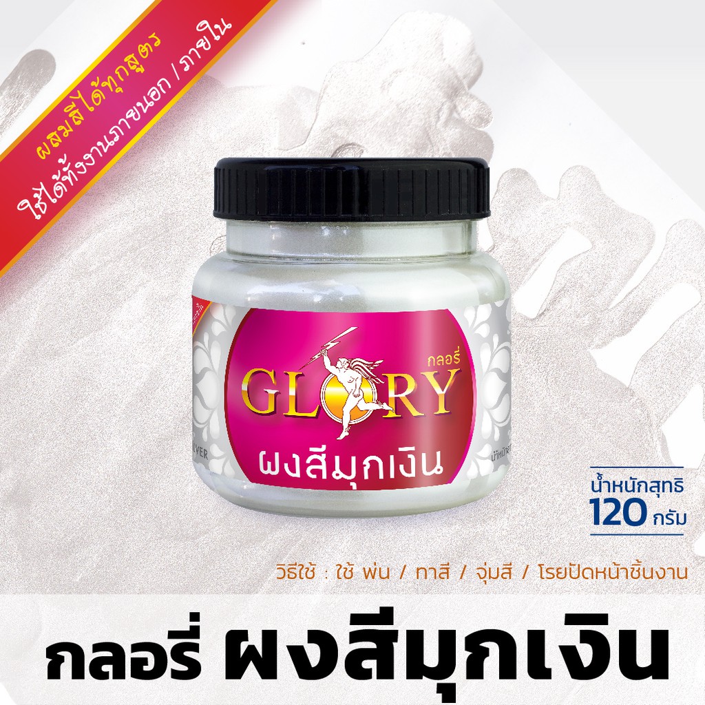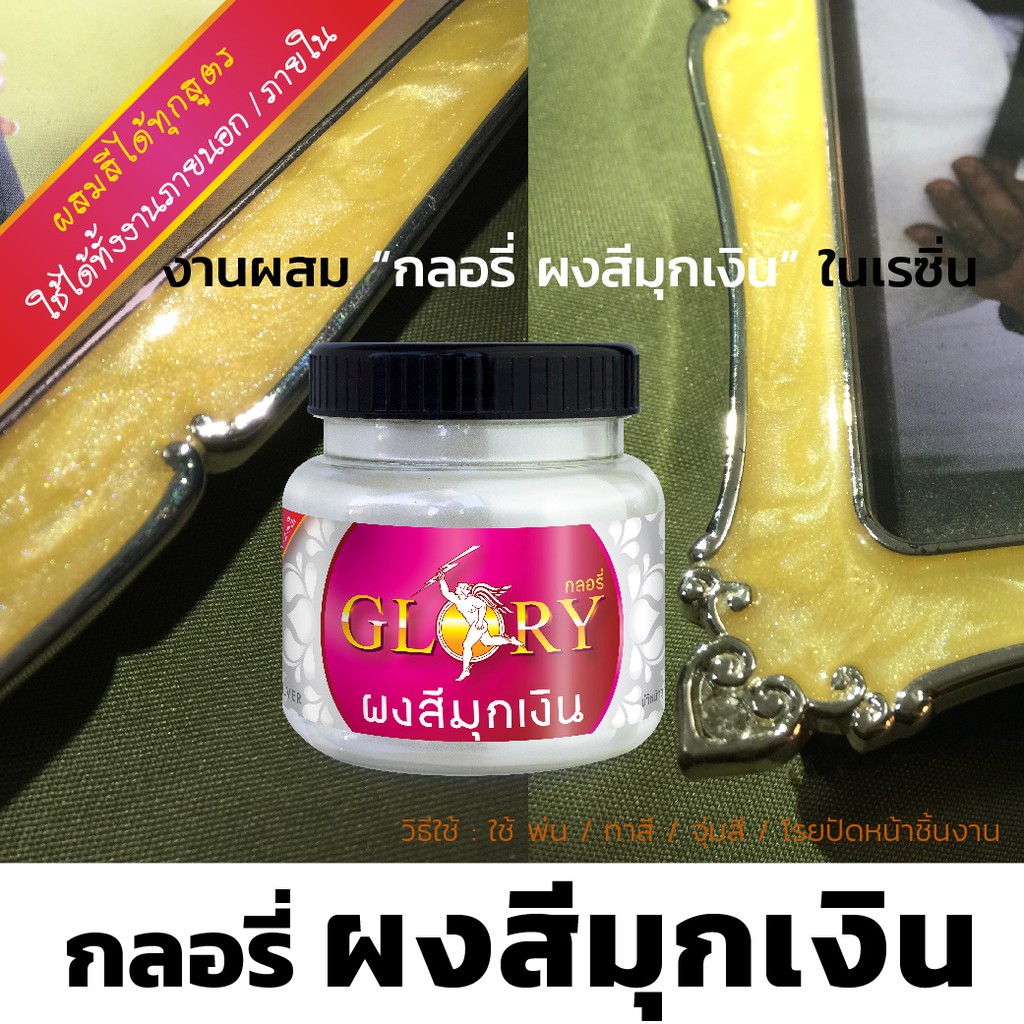 ผงมุกเงิน "GLORY กลอรี่" ผงมุกผสมสี ขาวมุก มุกขาว สีไข่มุก สีเงินขาว เงา (120 กรัม)(มีใบกำกับภาษี)