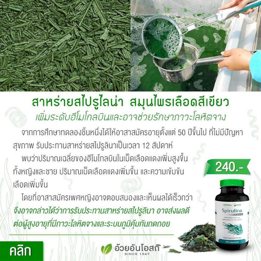 Herbal One Spirulina เฮอร์บัล วัน สาหร่ายสไปรูไลน่าชนิดแคปซูล (อ้วยอันโอสถ) #5568