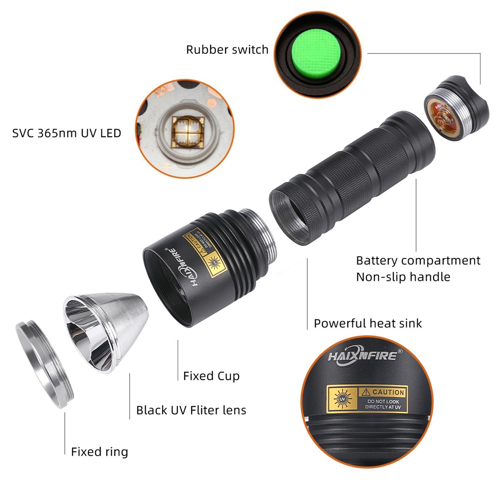 Haixnfire SV13 15W UV ไฟฉาย LED 365nm UV แสงสีดํา สัตว์เลี้ยง เครื่องตรวจจับคราบปัสสาวะ โคมไฟกันน้ํา