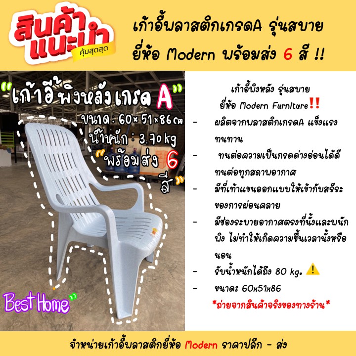 เก้าอี้พลาสติกพิงหลัง รุ่นสบาย พลาสติกเกรดA ยี่ห้อModern