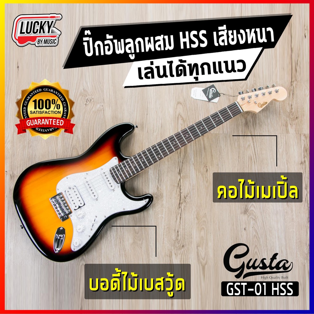 [โค้ดลด1000-📸] กีต้าร์ไฟฟ้า Gusta GST-01 ปิ๊กอัพ HSS / SSS มีหลายสี เสียงหนา แถมฟรี ปิ๊ก4อัน คู่มือ สายแจ็ค คันโยก