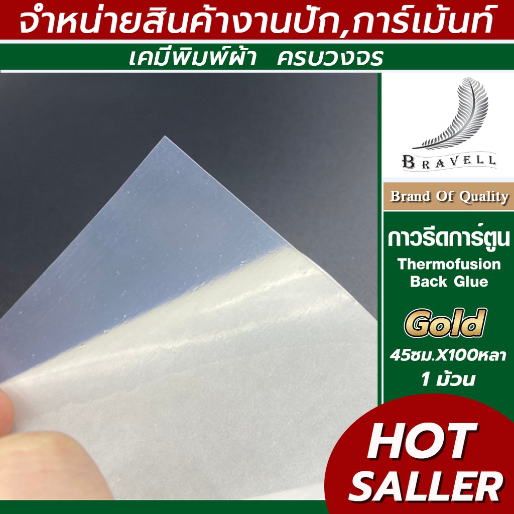 กาวรีดการ์ตูน GOLD แผ่นกาวรีดติดผ้า กาวรีดร้อน iron-on 45ซม*100หลา (1ม้วน) (Thermofusion Back Glue.)
