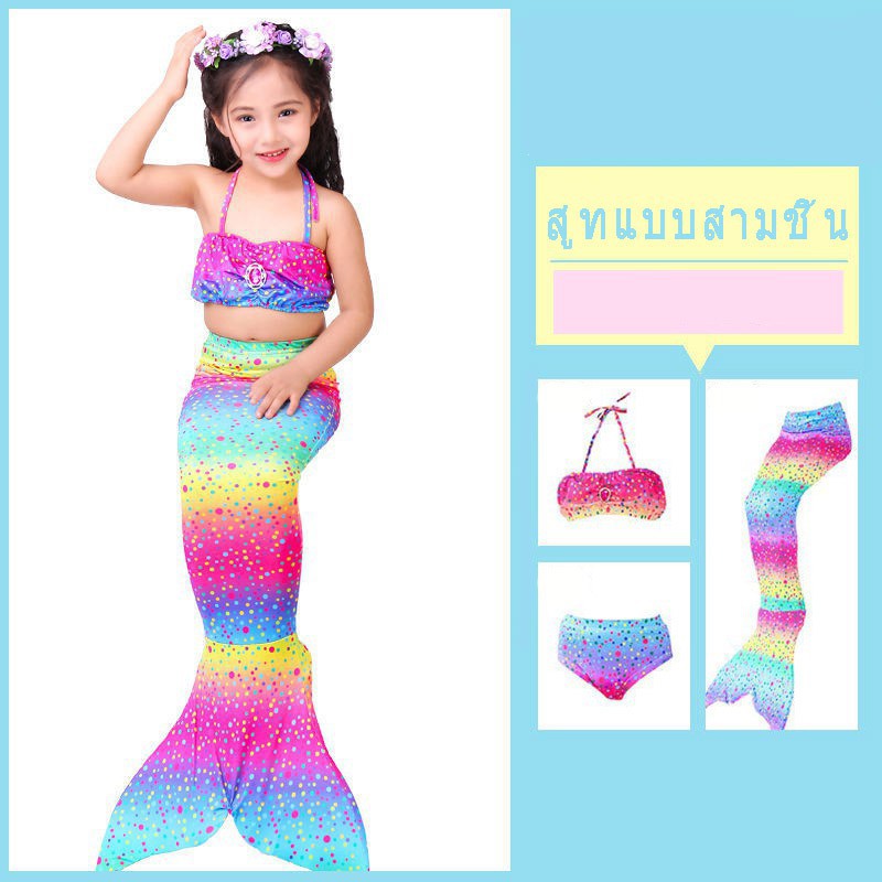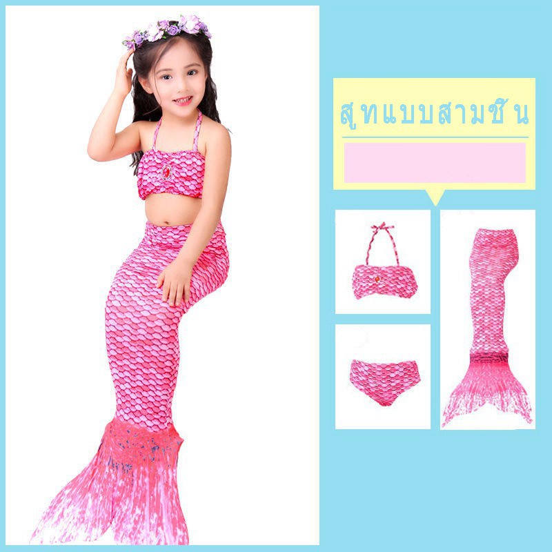 ICE SWEET ชุดนางเงือก หางนางเงือก ชุดว่ายน้ำนางเงือก ชุดว่ายน้ำเด็ก ชุดว่ายน้ำ 1 set ได้ถึง 3 ใส่สบายผ้านิ่ม สีสันน่ารัก