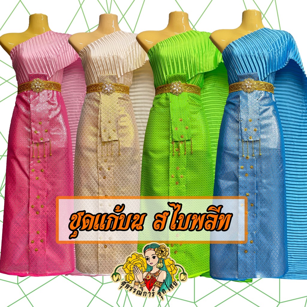 [พร้อมส่ง] ชุดไทยแก้บน สไบพลีท ชุดนางไม้ ชุดแก้บน ชุดไทย ✨ ผ้าถุงปัก พิกุลทอง หน้านางห้อยชายมุกทอง ทุกผืน งานคุณภาพ