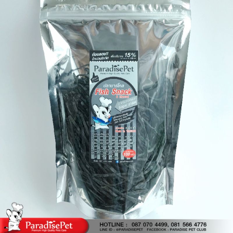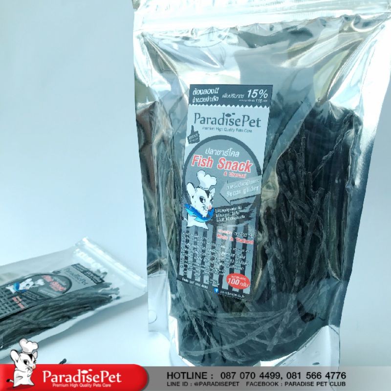 ปลาเส้น Chachol Fish snack ผสมชาร์โคล ของพาราไดซ์แท้ ผลิตสำหรับชูก้าร์ไกลเดอร์โดยเฉพาะ ปลอดภัย ดูดสารพิษ รับประกันทุกซอง