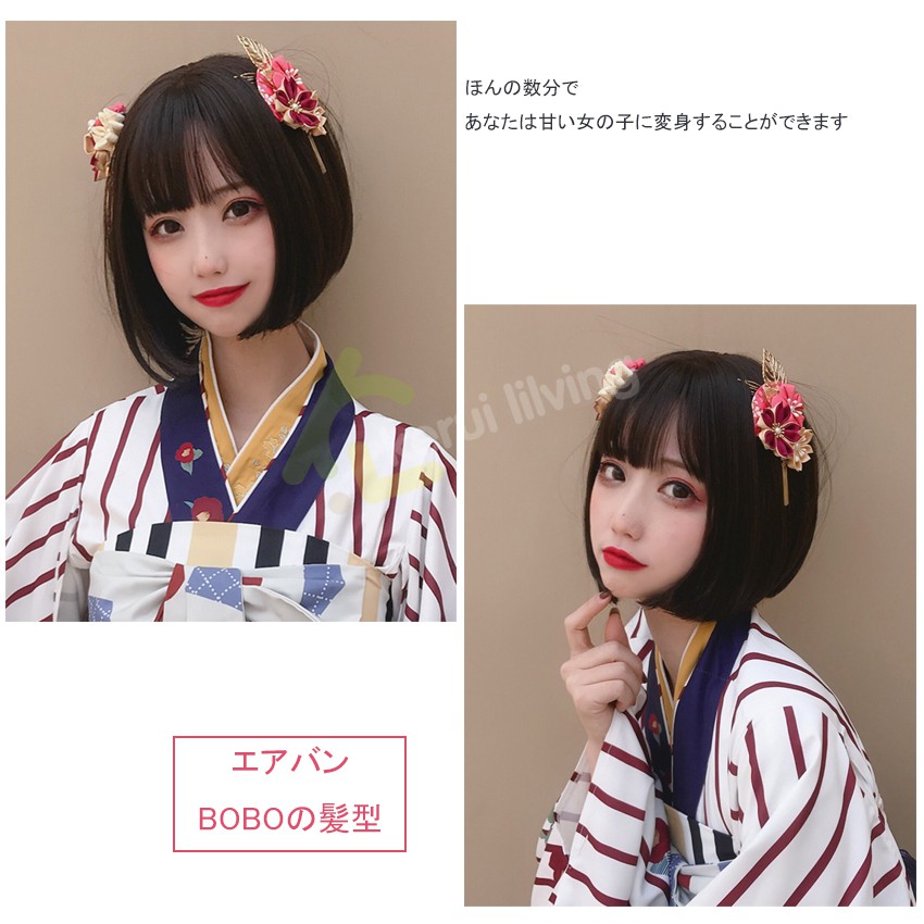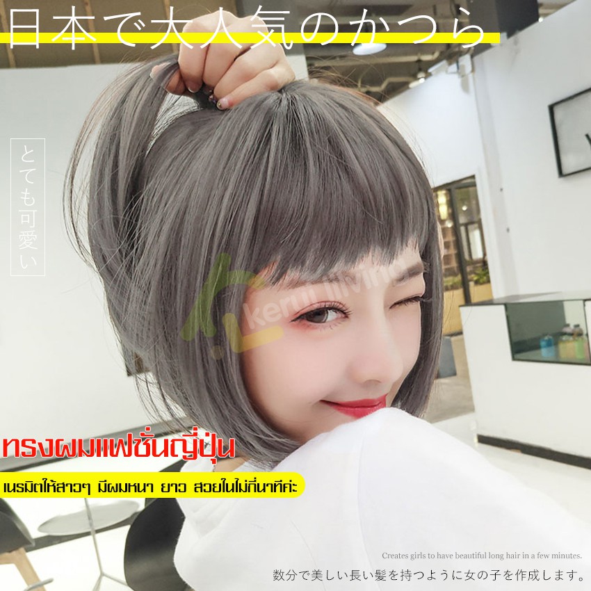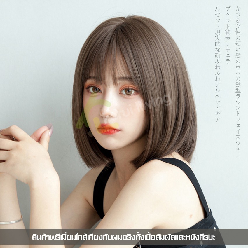 RYBACK วิกผมสั้น Short wig หน้าม้า ฟรีตาข่ายคลุมผม ผมปลอม แฮร์พีชผมปลอม ผมปลอมสั้น วิกผมผู้หญิง แฮร์พีชผมสั้น