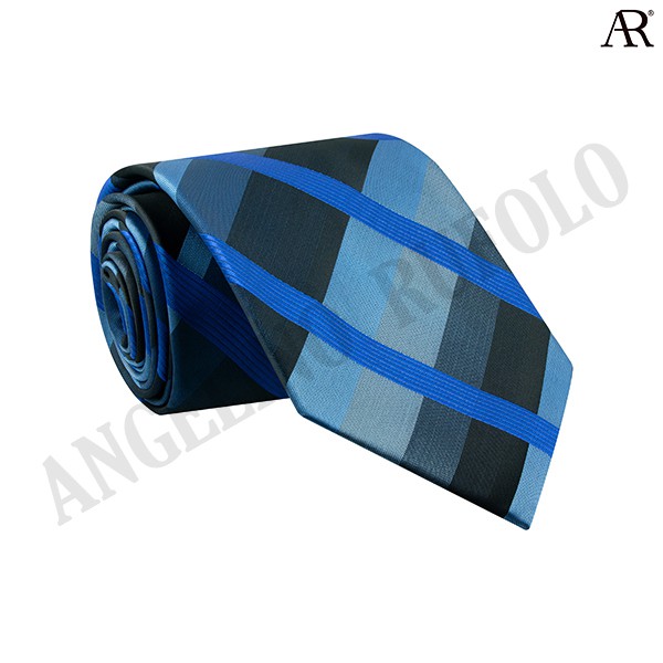 ANGELINO RUFOLO Necktie(NTN-ก.ฟ.030) เนคไทผ้าไหมทออิตาลี่คุณภาพเยี่ยม ดีไซน์ Graphic Pattern สีเทา-ดำ/สีกรมท่า-ฟ้า