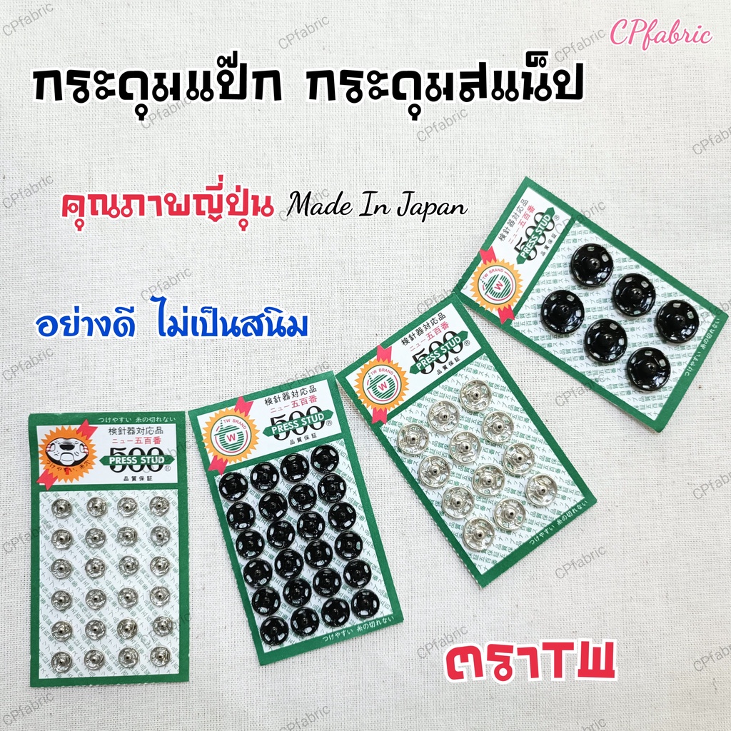 กระดุมสแน็ป กระดุมแป๊ก ติดแน่น ไม่เป็นสนิม คุณภาพญี่ปุ่น ตราTW