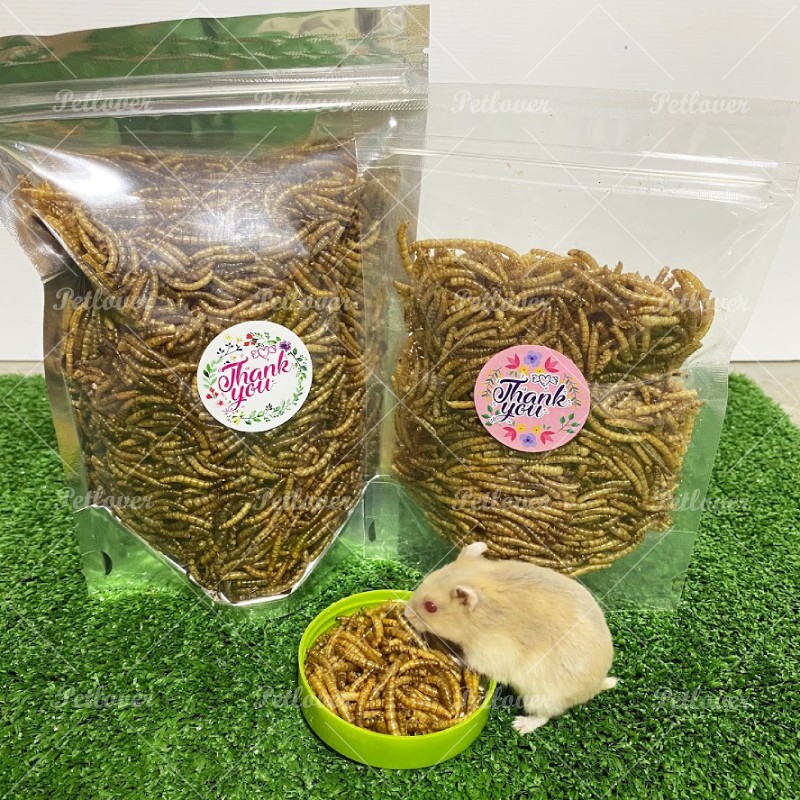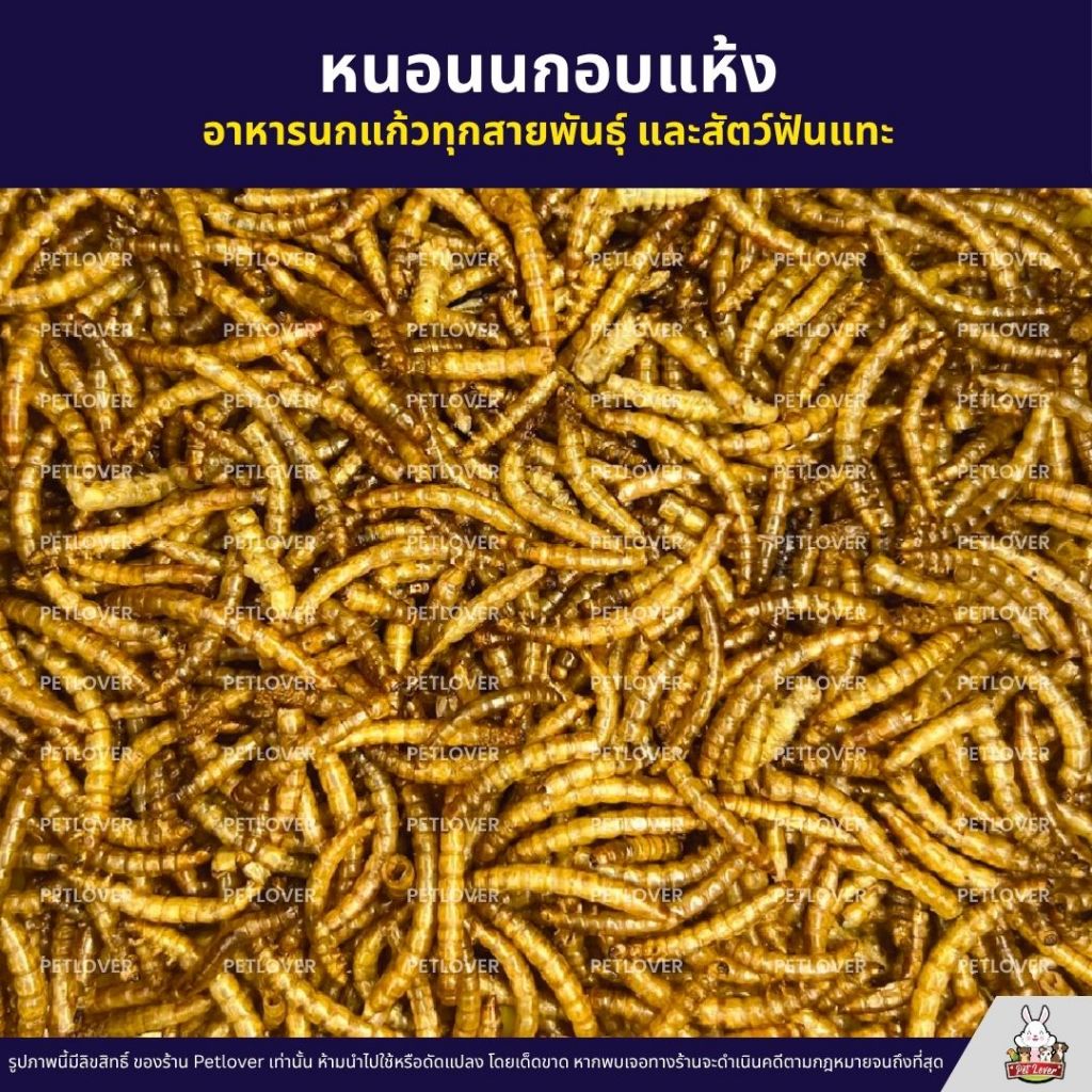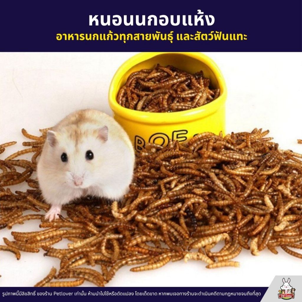 หนอนนกอบแห้ง เกรดA อาหารหนูแฮมสเตอร์ ชูก้า แพรี่ดอก เม่นเคระ และสัตว์เลี้ยงอื่นๆ (แบ่งขาย 25G / 50G)