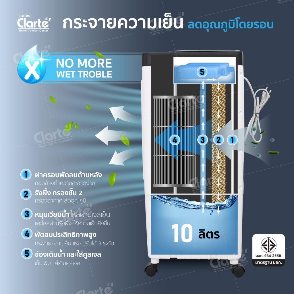 [สต๊อคจำนวนจำกัด]Clarteพัดลมไอเย็น 10 ลิตรพื้นที่15-20ตรม. รุ่น CTME720และFlezieรุ่นCTME719Fแถมฟรีคูลเจล2ชิ้น