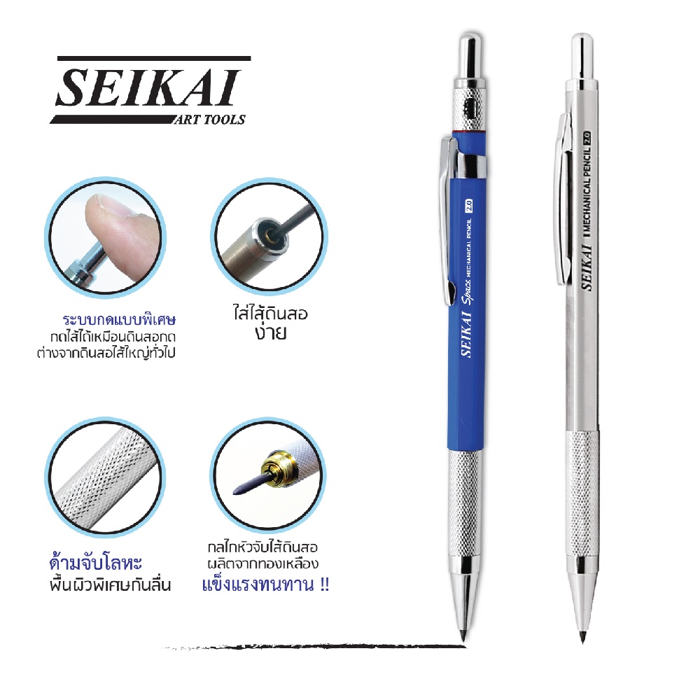 ดินสอกดไส้ใหญ่ 2.0 mm SEIKAI + ไส้ดินสอ 2B 1 กล่อง (1 ชุด) ดินสอเขียนแบบไส้ใหญ่