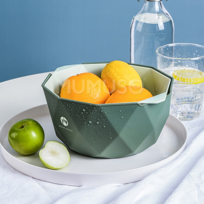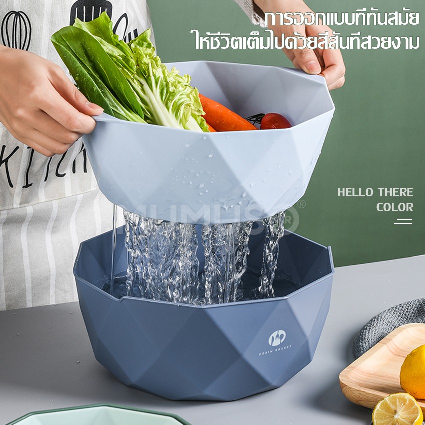 mumuso กะละมัง พลาสติก มีรูระบายน้ำ ชั้นบนมีรูระบายน้ำ มี2ไซส์ให้เลือกตระกร้าล้างผัก กะละมังล้างผักผลไม้