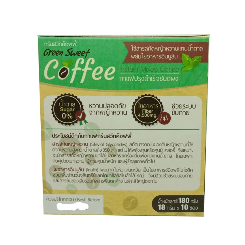 กาแฟหญ้าหวาน กรีนสวีท ค๊อฟฟี่ ปราศจากไขมันทรานต์ มีใยอาหารอินนูลิน