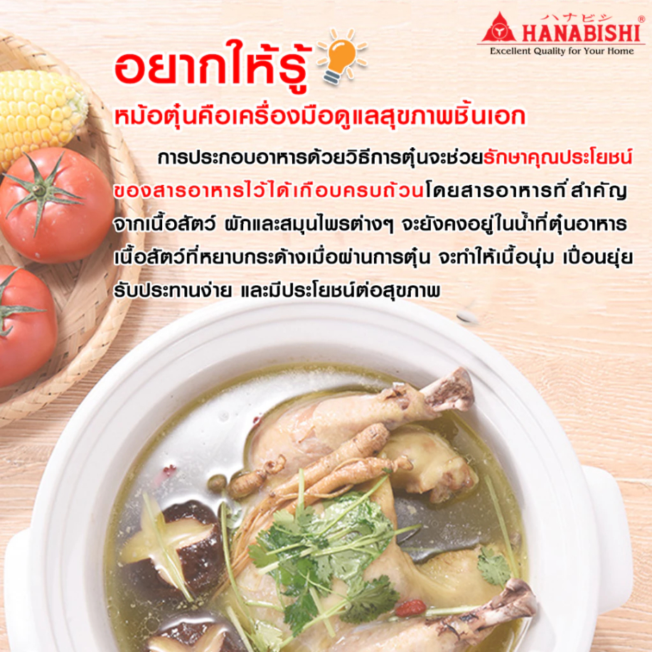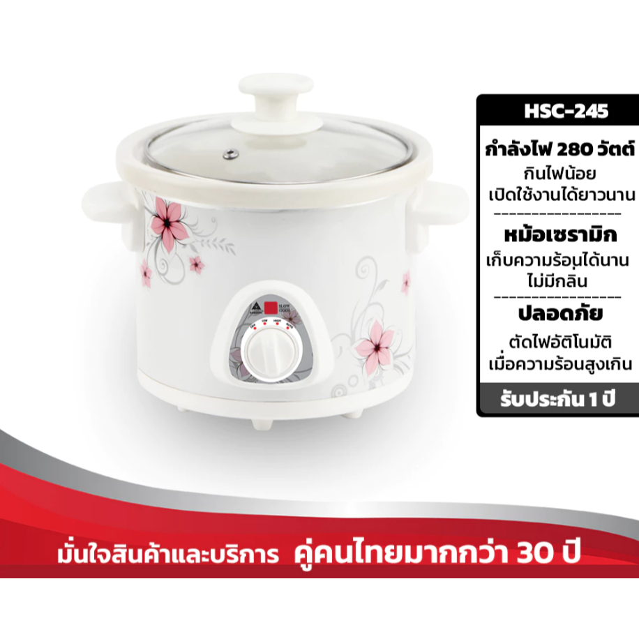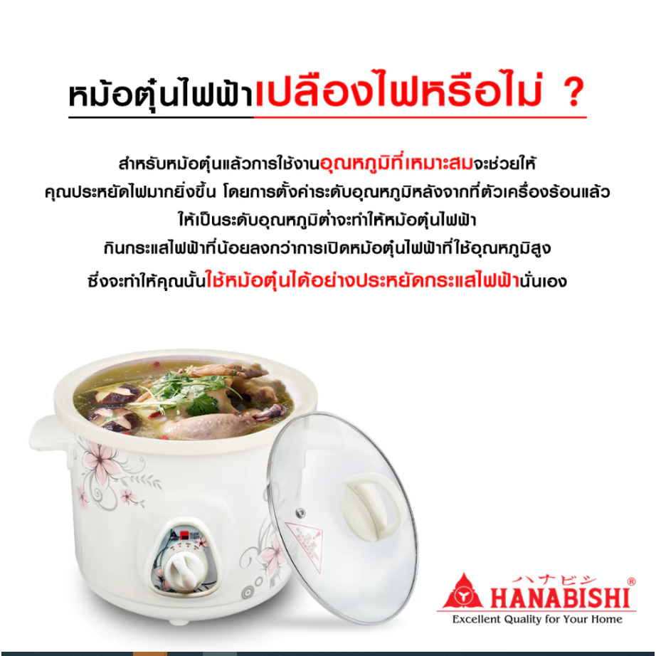 HANABISHI หม้อตุ๋น รุ่น HSC-245 ขนาด 4 ลิตร สีขาว หม้อตุ๋นเซรามิค หม้อตุ๋นไฟฟ้า หม้อตุ๋น