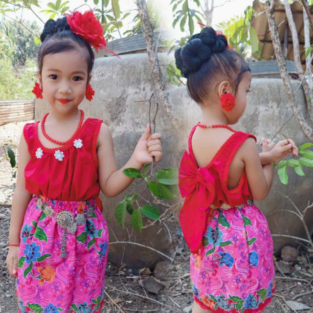ชุดเสื้อคอกระเช้าเด็ก เสื้อ+ผ้าถุง