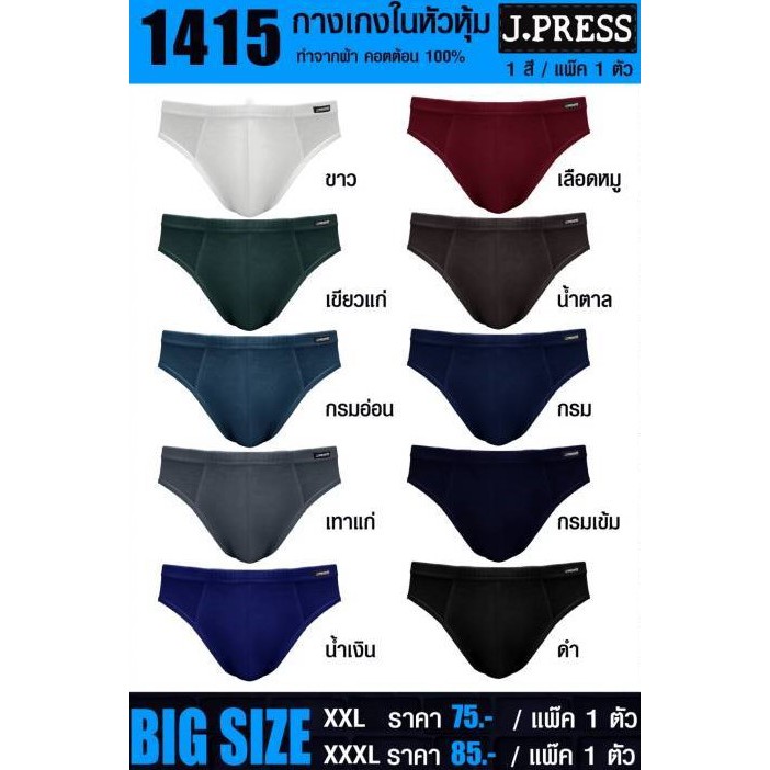 กางเกงในชาย ไซด์ใหญ่ ตัวใหญ่ J.Press หัวหุ้ม (1 ตัว) XXL 3XL XXXL 10 สีให้เลือก J Press เจเพรส รุ่น 1415 กางเกงใน ชาย