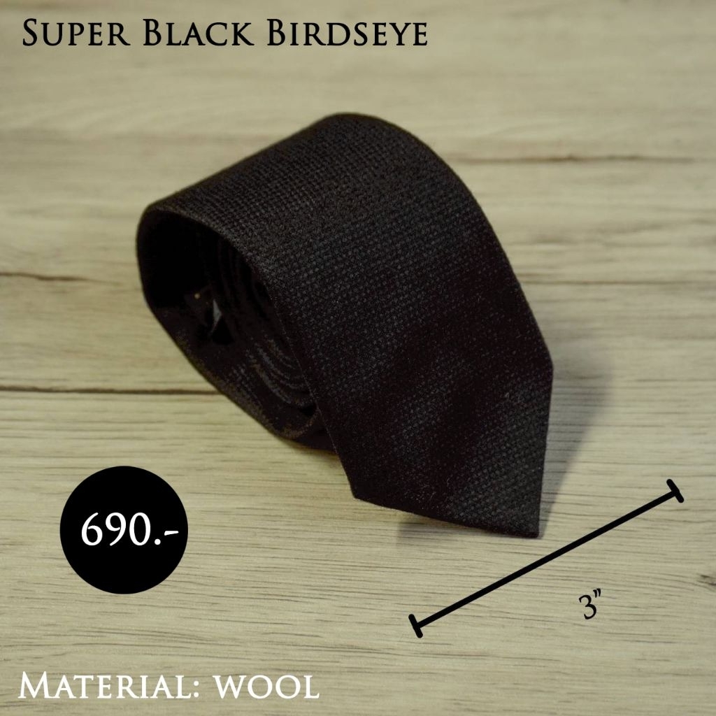 เนคไทดำSuperBlack ผ้าวูลหรู3/3.5นิ้ว