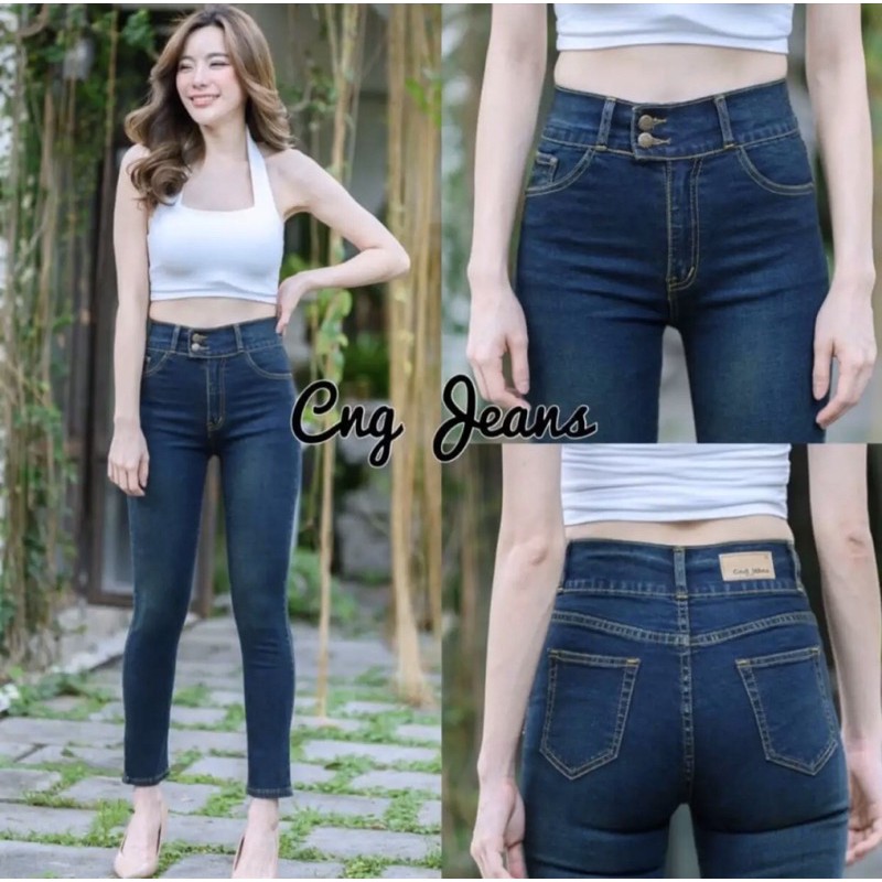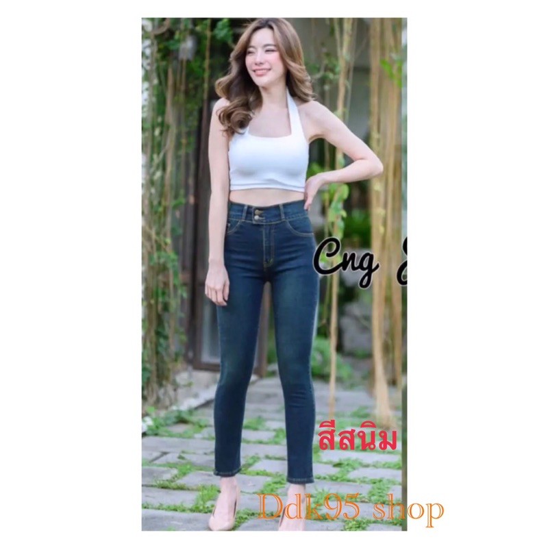 กางเกงยีนส์ขาเดฟ เอวสูงขอบหนาใส่แล้วเก็บทรง งานป้าย Cng jeans