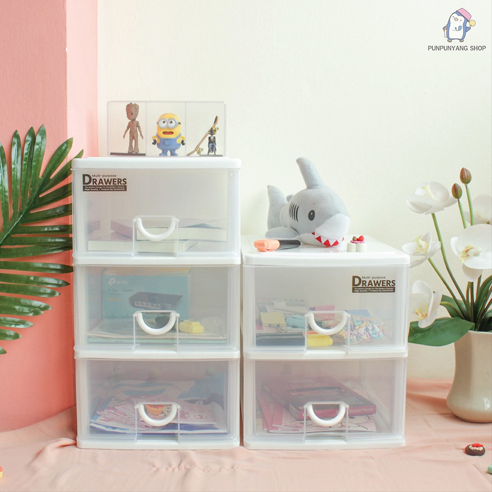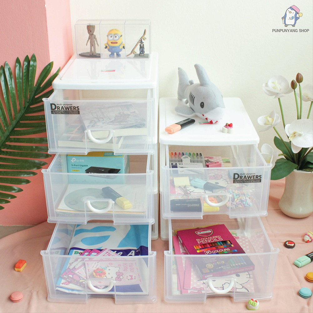 ลิ้นชักพลาสติก 2 ชั้น และ 3 ชั้น เก็บเอกสาร อุปกรณ์เครื่องเขียน เนื้อโปร่งมองเห็นด้านใน