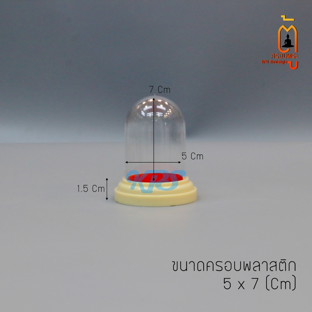 ครอบพลาสติก ครอบพระหน้ารถ ฐานขาวครีม พื้นกำมะหยี่แดง