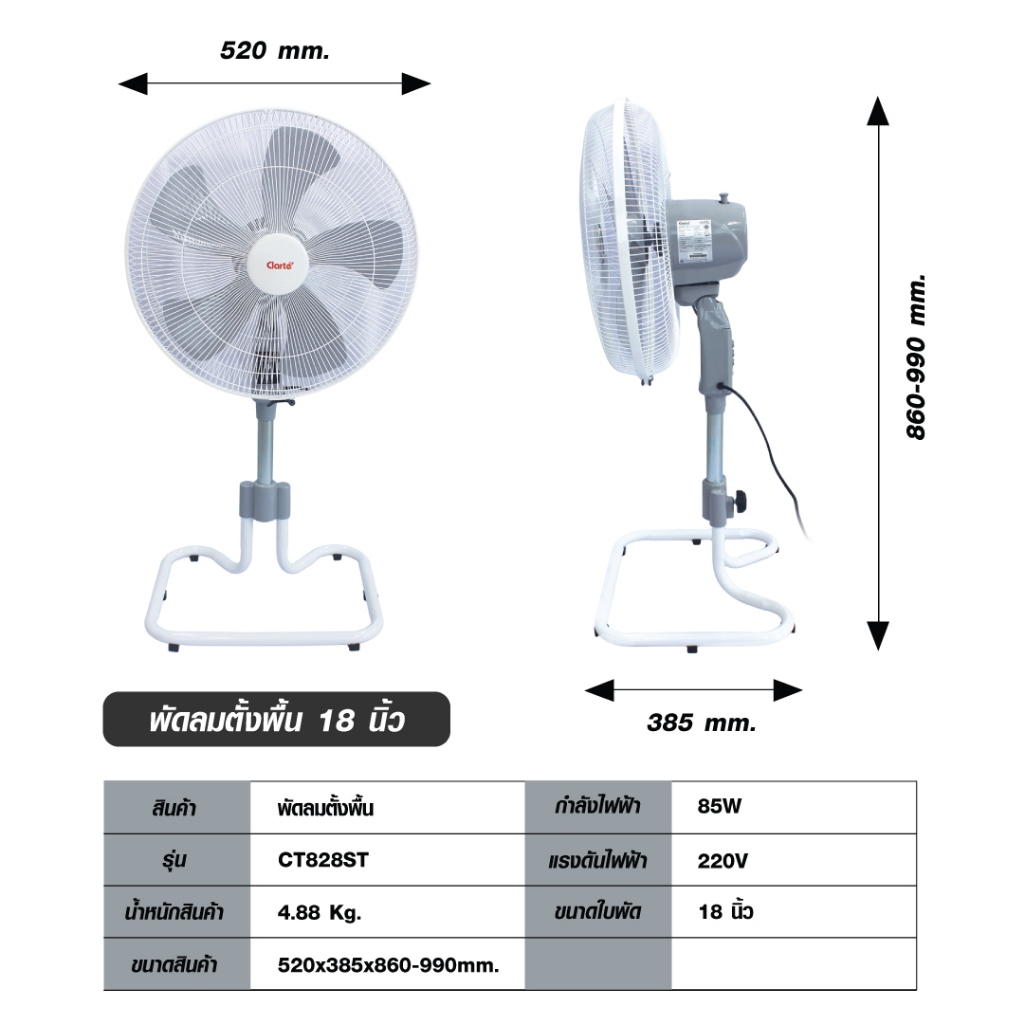 Clarteพัดลมอุตสาหกรรมตั้งพื้น18นิ้วสีขาวรุ่นCT828ST