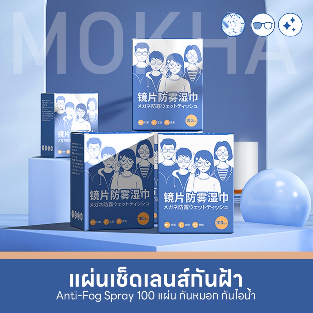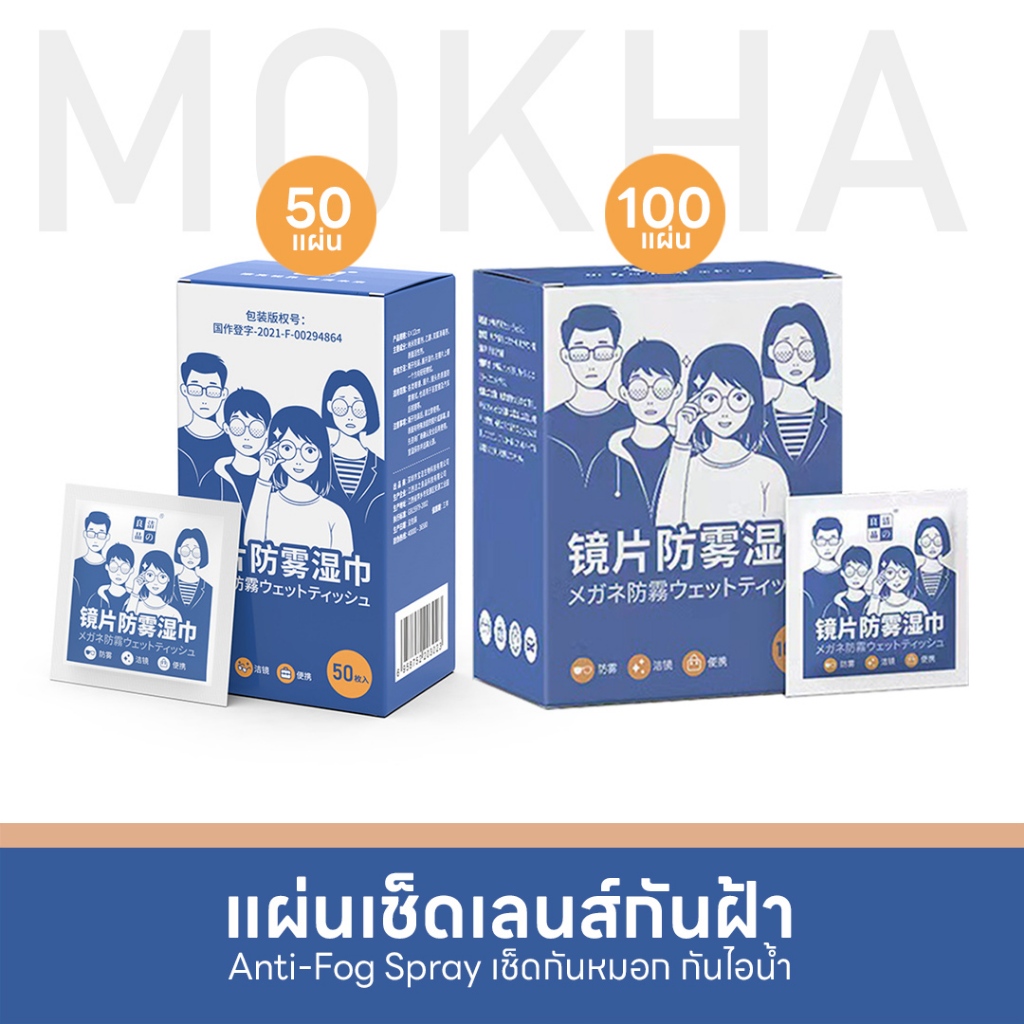 Mokha กระดาษเช็ดแว่น ผ้าเช็ดเลนส์ ป้องกันฝ้า กันไอน้ำ ผ้าเช็ดแว่นตากันหมอก (Anti-Fog Nano Wipe)