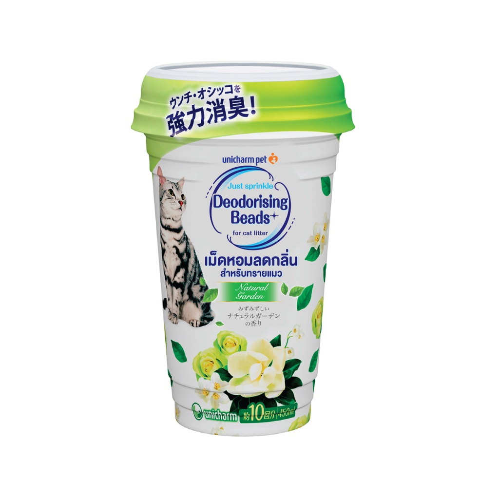 Unicharm Pet เม็ดหอม ลดกลิ่น สำหรับทรายแมว กลิ่นเนเชอรัล การ์เด้น หอมสดชื่น (สีเขียว) 450 มิลลิลิตร ห้องน้ำแมวเก็บกลิ่น