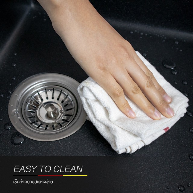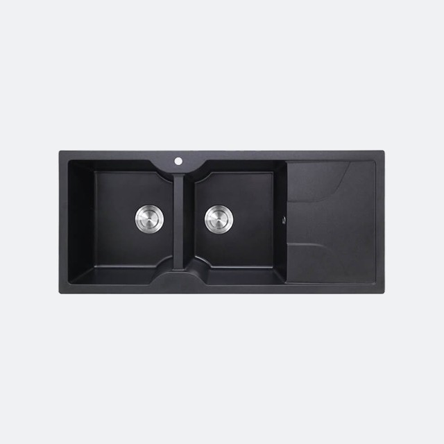 (Eve) ซิงค์ล้างจาน 2 หลุม หินแกรนิตสีดำ มีที่พัก รุ่น EUROSTONE 1160/500 สีดำ ฟรี ของแถมอื่นๆ