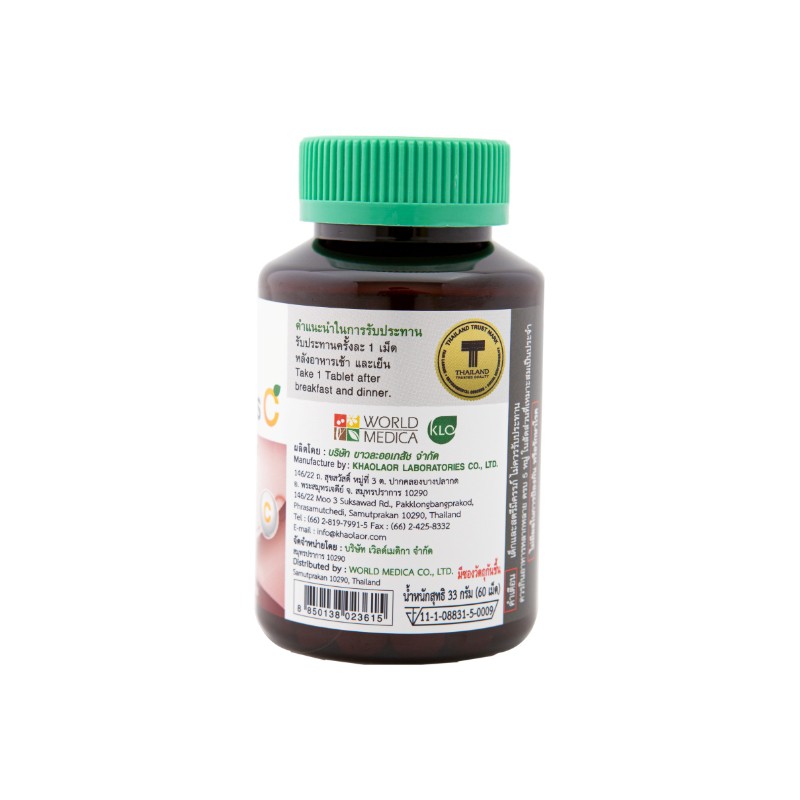 Khaolaor ขาวละออ หลินจือพลัสซี เห็ดหลินจือสกัดผสมวิตามินซี 60 เม็ด/ขวด