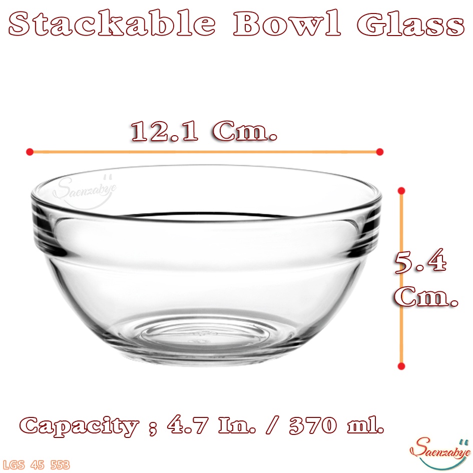 ชาม-ถ้วยแก้ว ใส่น้ำซุป อาหาร สลัด ขนมหวาน เครื่องปรุง รุ่น 45 553 Stackable Bowl ขนาด 4.3/4 In. 370 ml