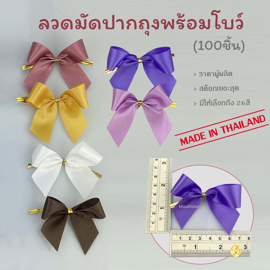 โบว์จิ๋วมัดปากถุงขนม-ของชำร่วย 21มม (*100ชิ้น) สี2/2