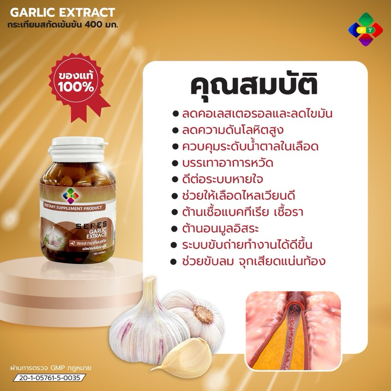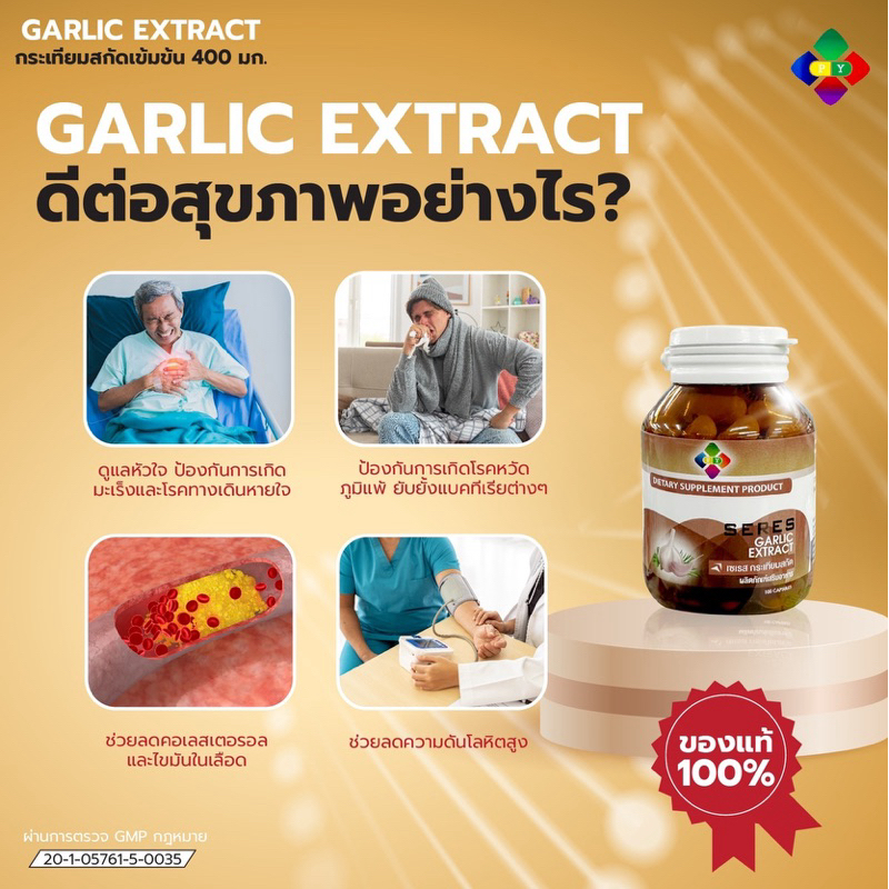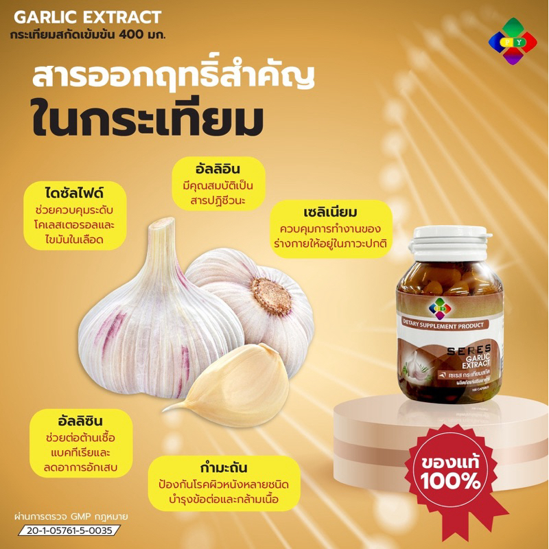 Garlic 100 cap กระเทียมสกัดเข้มข้น 400 mgต้านหวัด ลดไขมันในเลือด ลดความดันโลหิตสูง