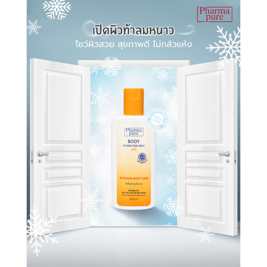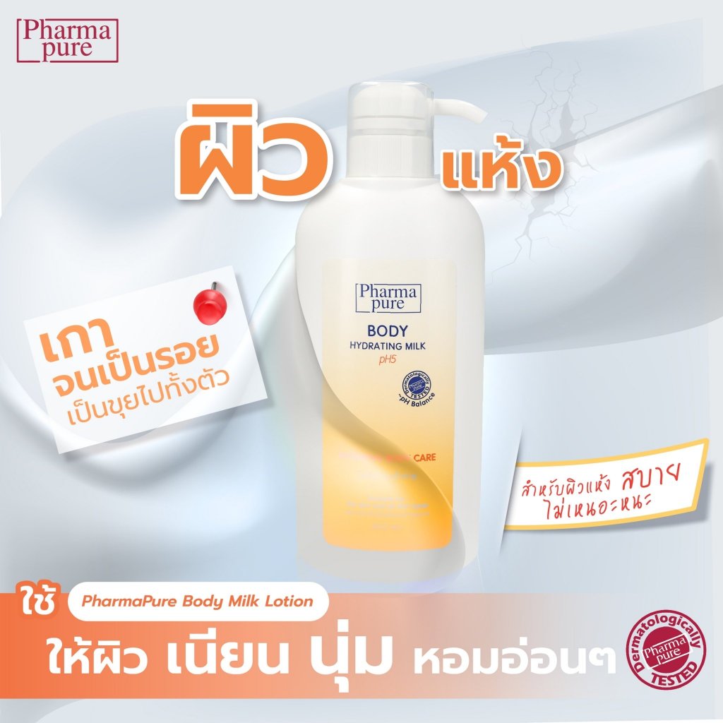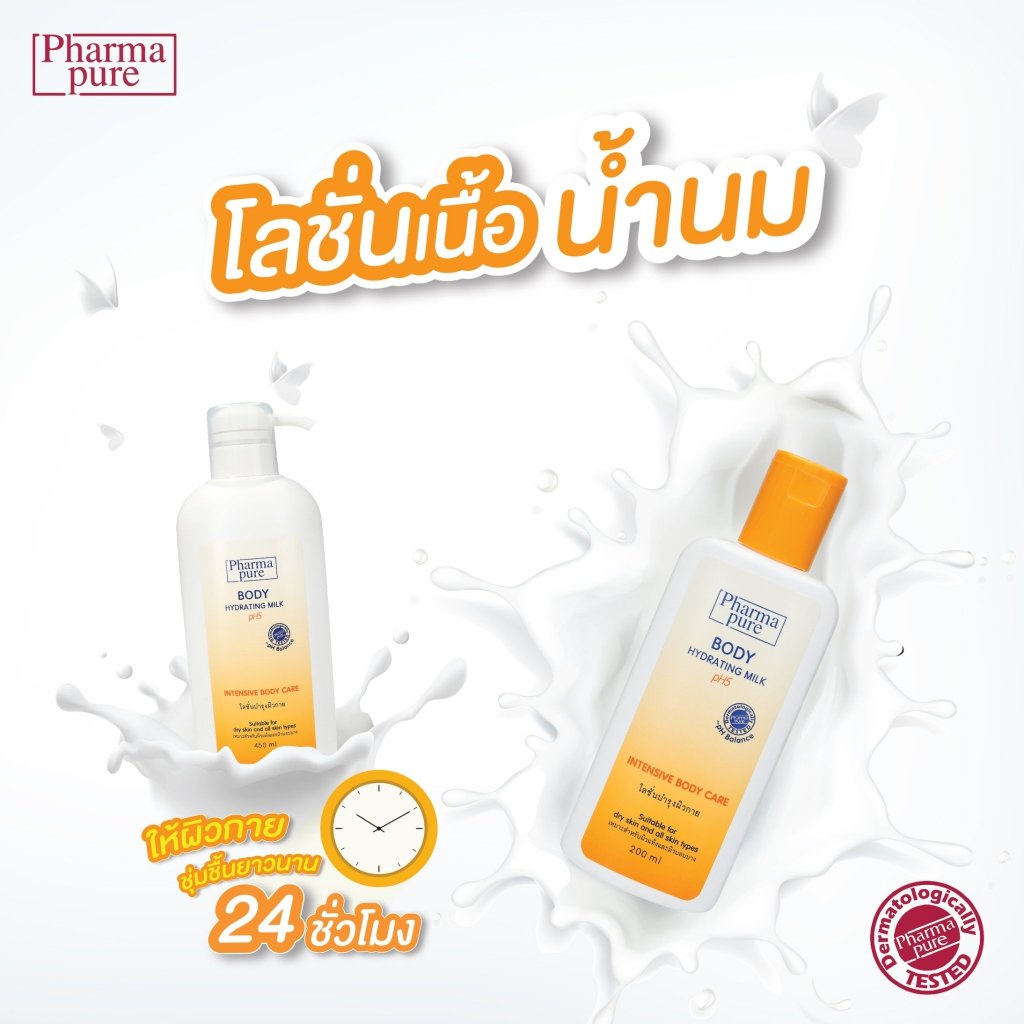 PharmaPure Body Milk Lotion 200 ml. โลชั่นบำรุงผิว ให้ผิวเนียนนุ่ม น่าสัมผัส ยาวนาน 24 ชั่วโมง